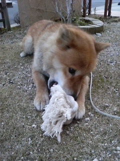 新しいおもちゃ参上! 前のお気に入り…ほどいて半分ボロボロになってしまい使用不可状態( ̄人 ̄) なので新しいのを買ってあげました。 なのに…なげても持って来ない(爆) 前足で持って舐めたり噛んだり忙しそうです。 でも気に入ってくれたみたいで良かったvvv |